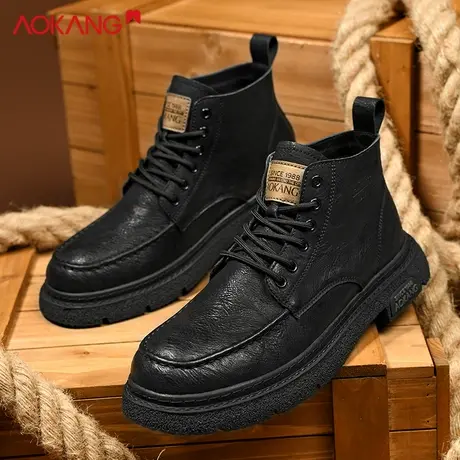 奥康男靴春季新款英伦风真皮马丁靴高帮黑色机车靴ins中帮工装靴